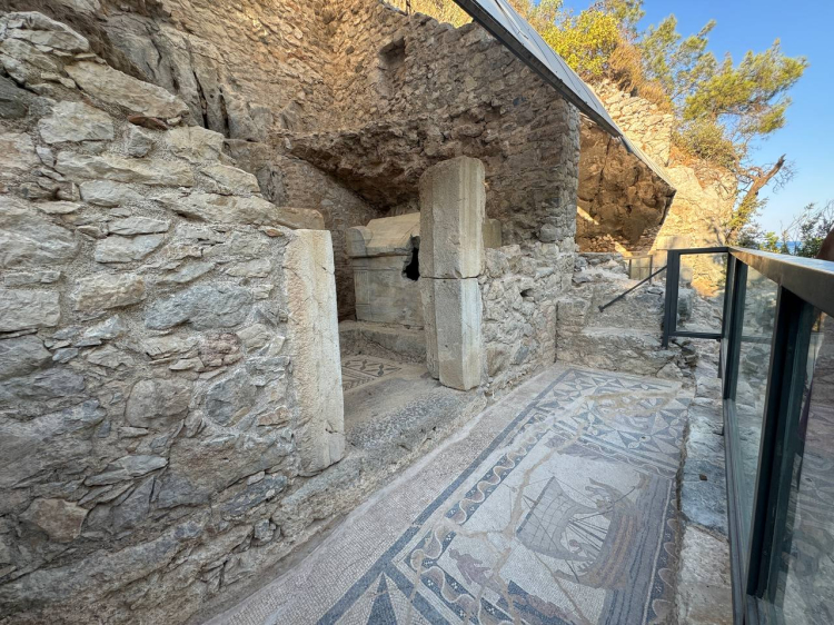 Yüzeyde görülen mozaik parçalarının, ikinci katın çökmesiyle zemin kata düştüğü görülüyor. Zemin kat mozaiklerinde geometrik bordürler içerisinde su kuşları, balık, keçi, tavşan, köpek gibi hayvan figürleri yer alıyor. Mozaikler stil özelliklerine göre milattan sonra 3. yüzyıl sonu ve 4. yüzyıl başına tarihleniyor.