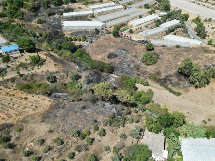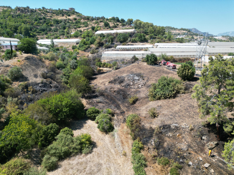 Antalya'nın Gazipaşa ilçesinde çıkan yangında yaklaşık 2 hektar ormanlık alan ile 4 sera zarar gördü