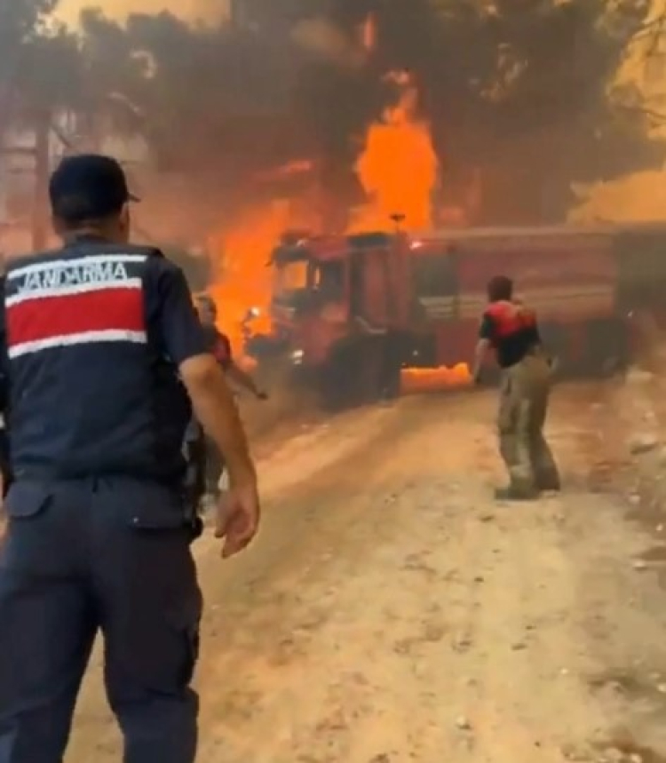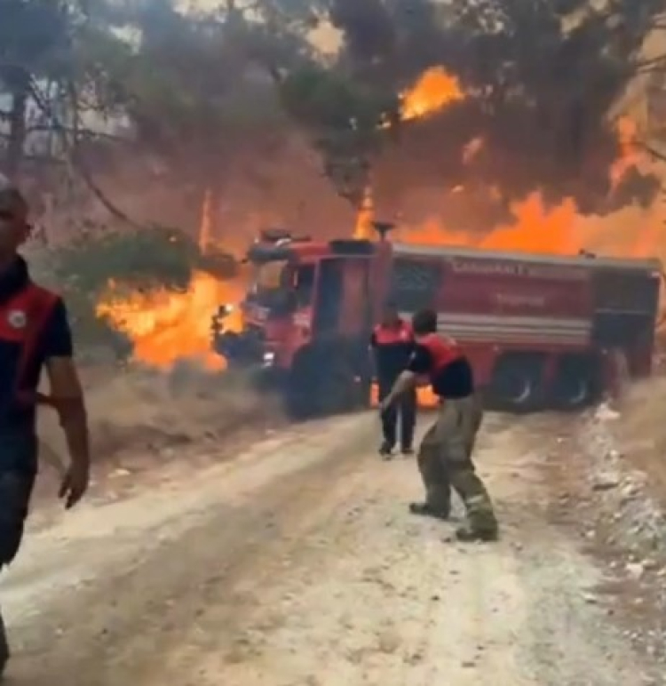 Çanakkale'deki yangına müdahale ederken, rüzgarın yön değiştirmesiyle itfaiye aracı alevlere kapıldı ve kullanılamaz hale geldi.