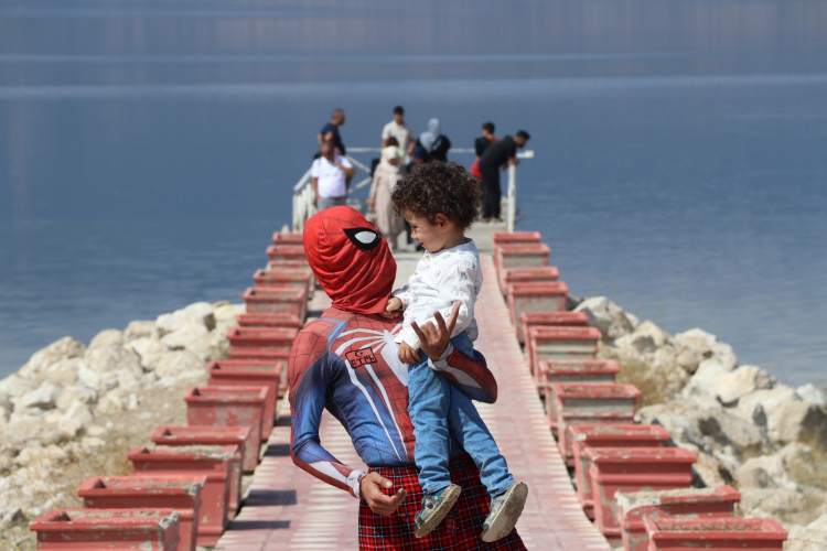 Kuruma tehdidi altındaki Burdur Gölü'nün kıyısına giden "Örümcek Adam", sular çekildikten sonra karada kalan iskelede fotoğraf çektirdi, iskelenin altından ve üstünden geçerek ziyaretçilere gösteri sundu. Yüzey alanının yaklaşık yarısını kaybeden Burdur Gölü'ne üzüldüğünü dile getiren Koç, "göl kurumasın" diye seslendi.