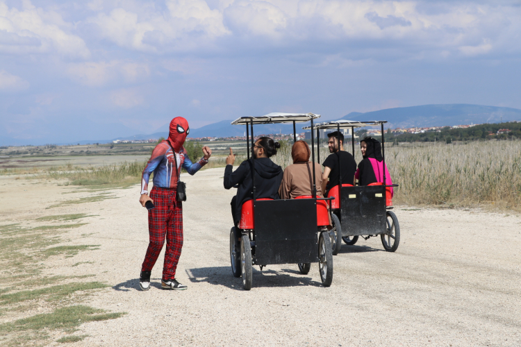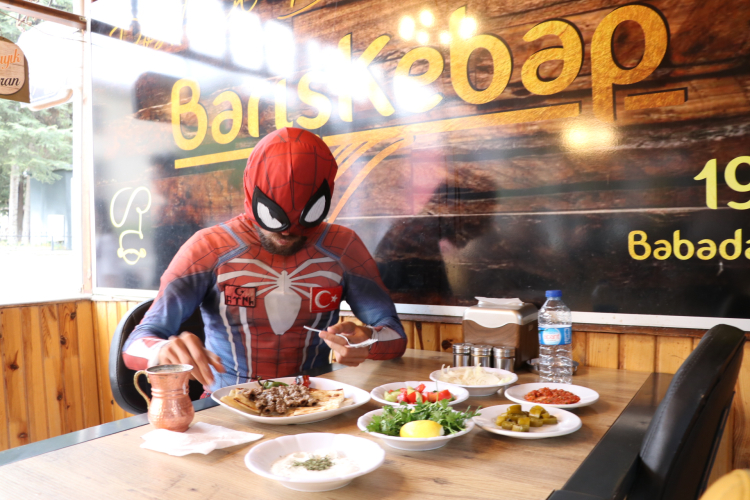 Türkiye'yi gezme hayaliyle "Örümcek Adam" kostümüyle yola çıkan Salih Ayaz Koç, Burdur'a ulaştı.