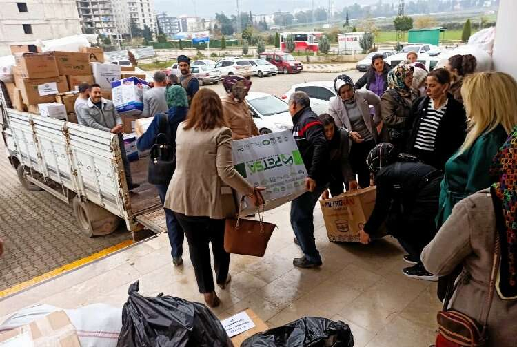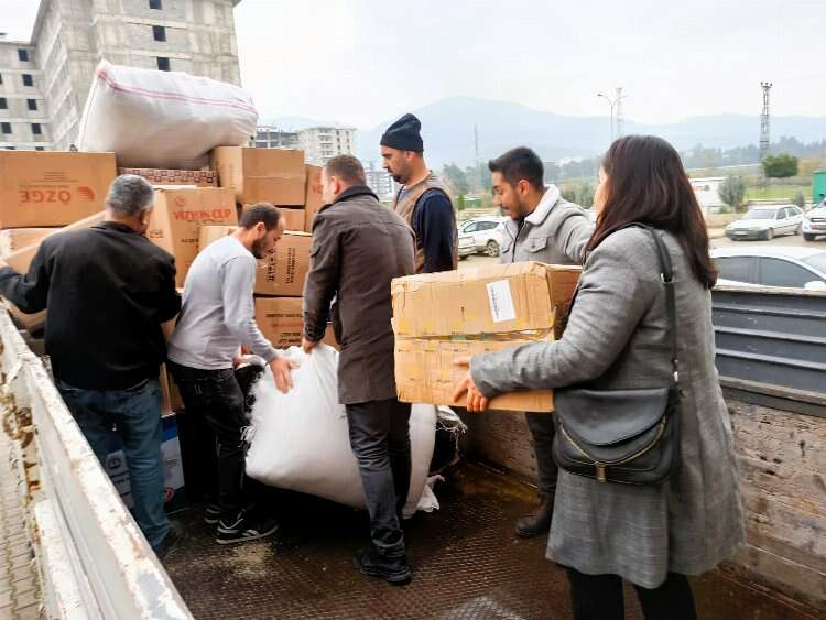 Konuşmaların ardından kıyafet ve battaniyelerin yer aldığı kamyon, dualarla uğurlandı.