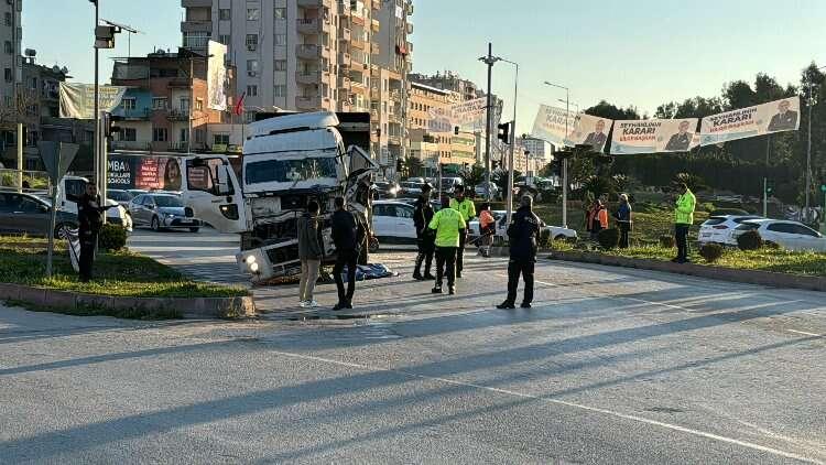 Adana'da otobüs ile çarpışan kamyonun sürücüsü öldü.