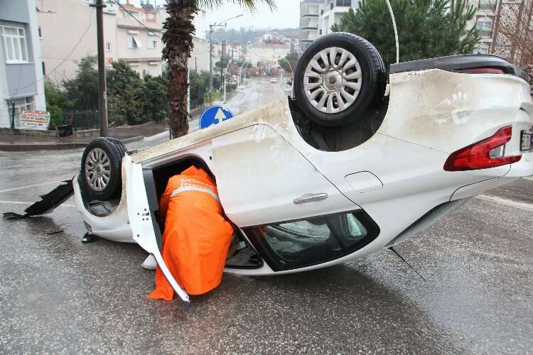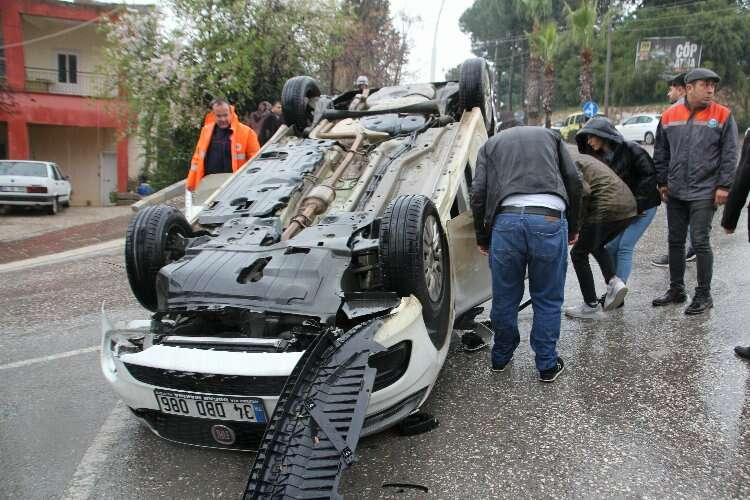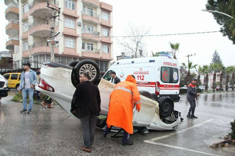 Merkez Mahallesi Hastane Caddesi'nde Ahmet Görkem Engür idaresindeki 34 DBD 086 plakalı otomobil, döner kavşakta havanın yağışlı olması nedeniyle sürücüsünün direksiyon hakimiyetini kaybetmesi sonucu takla attı.