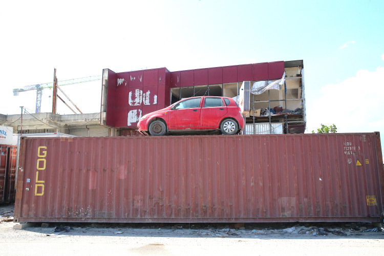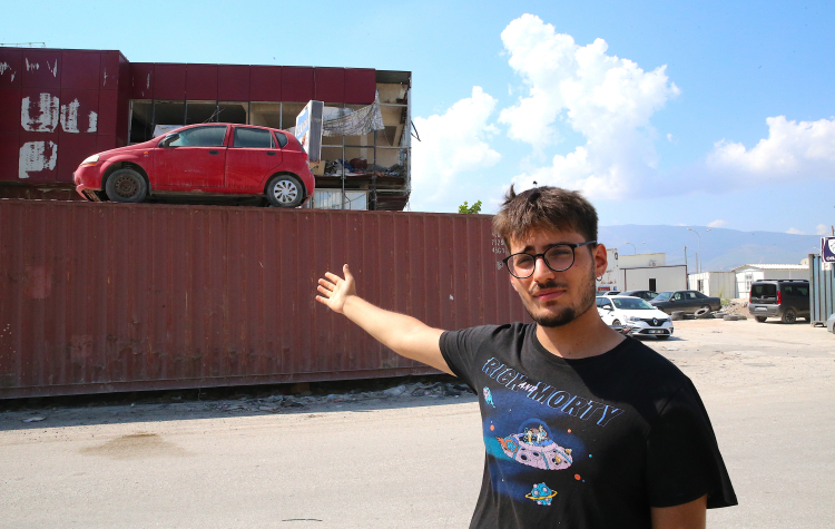 Hataylı esnaf Mehmet Fikret Sincik, dedesinden kalan atıl otomobili çalınmaması için iş yeri olarak kullanılan konteynerin üstüne sabitledi.