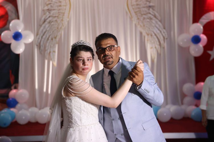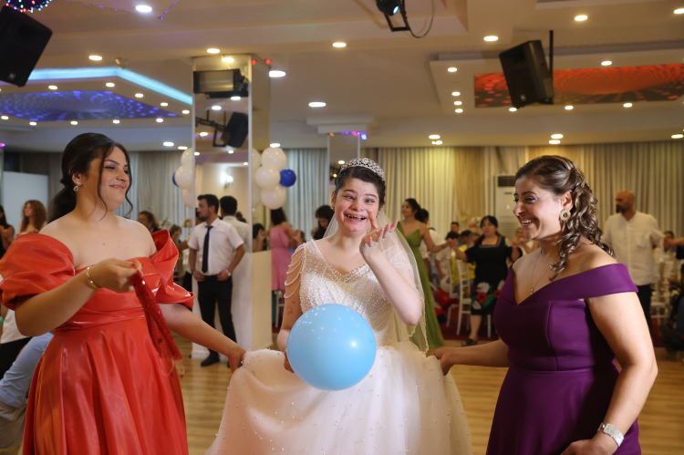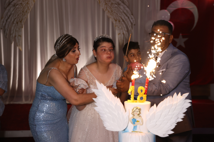 Mersin'in Yenişehir ilçesinde, Angelman sendromlu genç kızın doğum günü temsili düğün organizasyonuyla kutlandı.