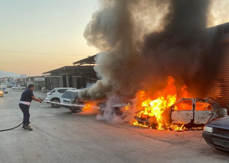 Hatay'ın Kırıkhan ilçesinde sanayi sitesindeki 5 otomobilde çıkan yangın söndürüldü.