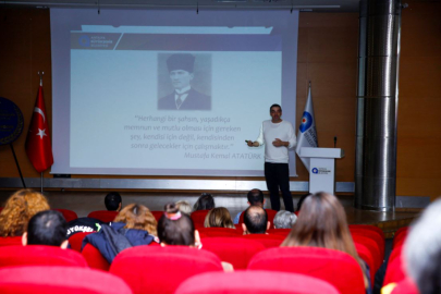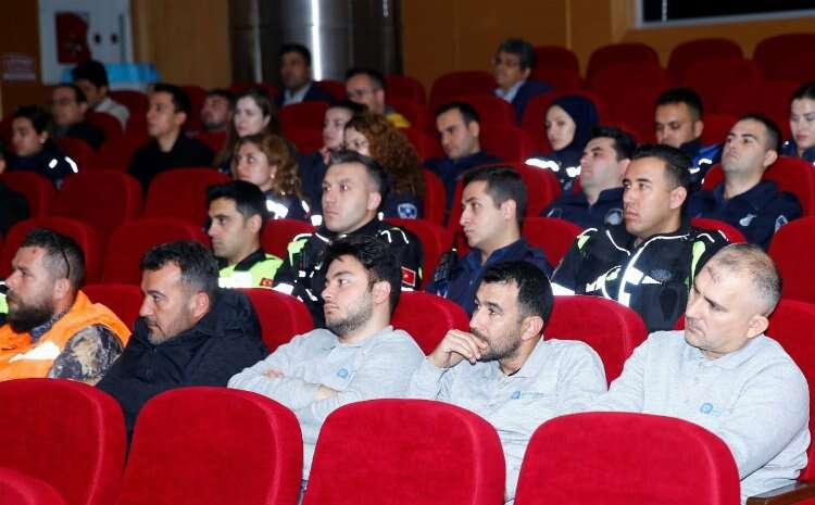 Antalya Büyükşehir Belediyesi, belediye hizmet binasında, personeline, afetler konusunda farkındalık eğitimi verdi.