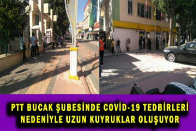 Bucak’ta pandemi döneminde son günlerde covid-19 vakalarının artması nedeniyle yetkililer vatandaşları sosyal mesafe, maske ve hijyen kurallarına uyulması konusunda sürekli uyarıyor. Çalışanlarının bazılarında Covid-19 test sonuçlarının pozitif çıkması sonucu 4 Eylül tarihi itibariyle bir süre hizmete ara verilen PTT Bucak Şubesi geçtiğimiz günlerde yeniden halka hizmet vermeye başladı. Ancak şubede Covid-19 tedbirleri dolayısıyla hizmet yavaş ilerliyor. Bu nedenle zaman zaman PTT Bucak Şubesi önünde uzun kuyruklar oluyor.
