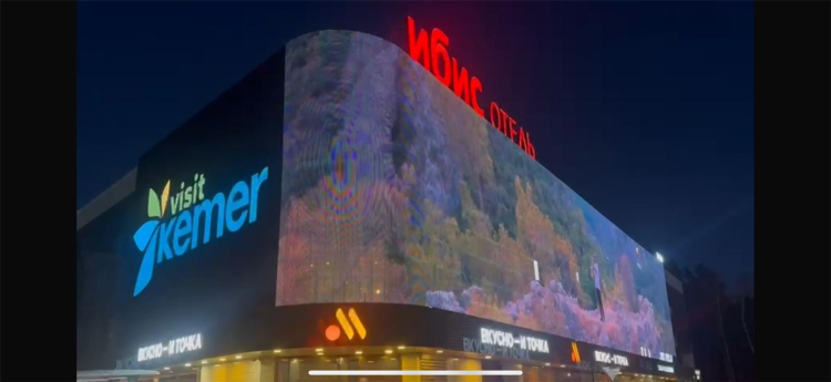 Kemer Belediye Başkanı Necati Topaloğlu'nun girişimleri ile Rusya'nın başkenti Moskova'da 1000 metrekarelik dev ekranda Kemer'in tanıtımları yapılmaya başlandı.