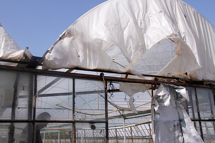 Mahsullerin zarar gördüğünü belirten Kaya, "Devletimizden gerekli yardımı bekliyoruz. Ben seramın camlarının kırıldığını sabah kalkınca fark ettim." diye konuştu.