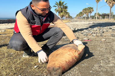 Hatay'ın Dörtyol ilçesi sahilinde ölü fok balığı bulundu.