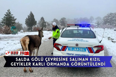 Salda Gölü Çevresine Salınan Kızıl Geyikler Karlı Ormanda Görüntülendi