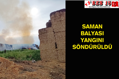 Adana'nın Karataş ilçesinde dün saman balyalarının istiflendiği alanda çıkan yangın ekiplerce söndürüldü.