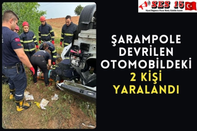 Şarampole devrilen araçtaki 2 kişi yaralandı.