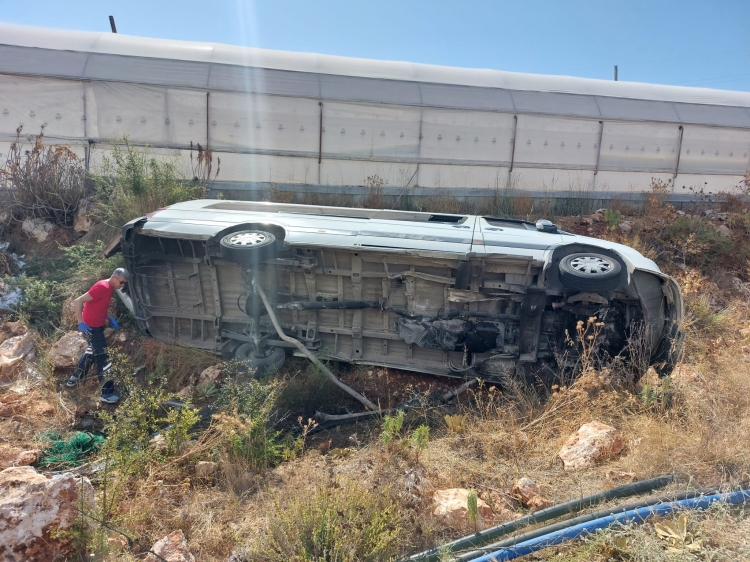 Hüseyin B. idaresindeki 07 BSB 052 plakalı tur minibüsü, D-400 kara yolu Gürses Mahallesi'nde, kontrolden çıkarak şarampole devrildi.
