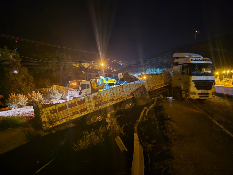 İsmail A. idaresindeki 63 ABM 278 plakalı domates yüklü tır, Belen-Antakya çevre yolunun Halilbey mevkisinde şarampole düştü.