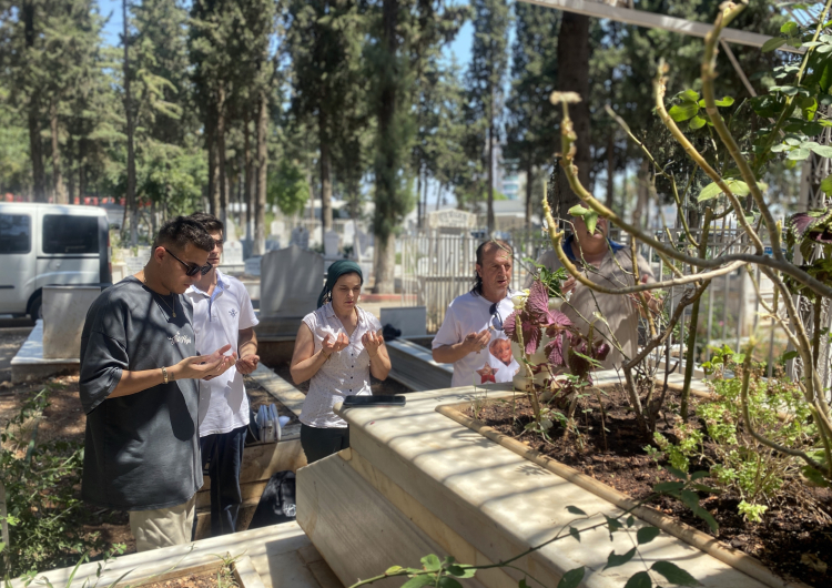 Mezara çiçek bırakan katılımcılar, dua okudu.