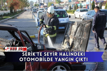 Antalya'nın Serik ilçesinde seyir halindeyken yangın çıkan otomobil kullanılamaz hale geldi.