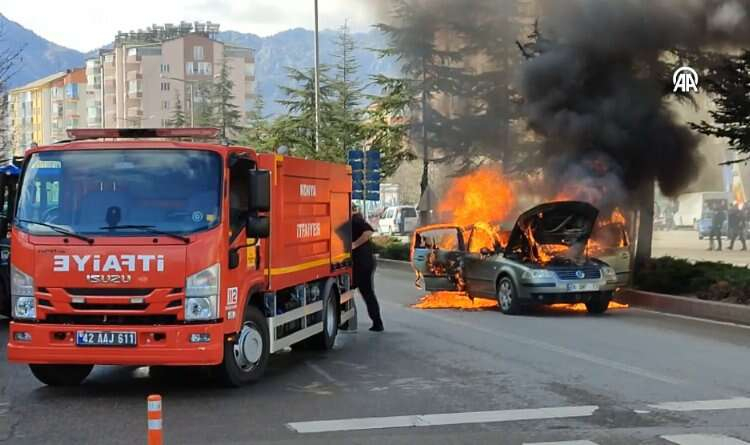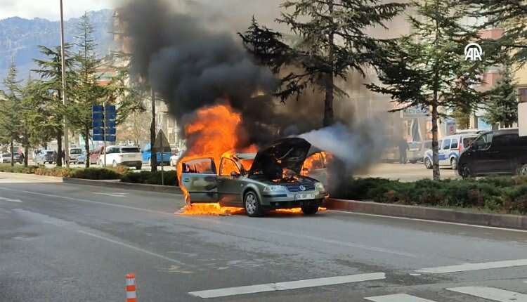 Kısa sürede otomobili saran alevler ekiplerin müdahalesiyle söndürülürken, araç kullanılamaz hale geldi.