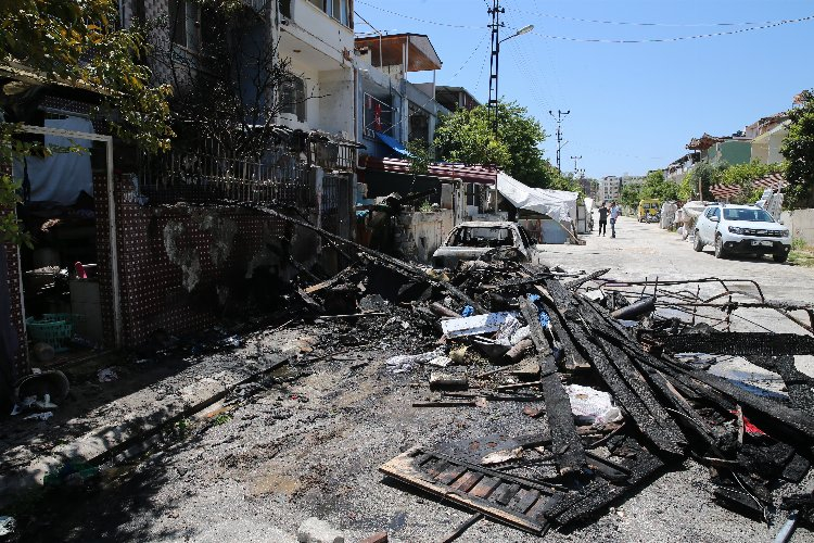 Alevler, hurdaların yakınında bulunan depremlerde hasar gören iki katlı kimsenin yaşamadığı apartmana ve park halindeki otomobile sıçradı.