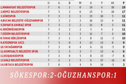 Bölgesel Amatör Lig 7. Grupta 7. Hafta maçları Pazar günü oynandı. Bucak Belediyesi Oğuzhanspor bu hafta Sökespor’u ağırladı. Bölgesel Amatör Lig 7. Grupta mücadele eden Bucak Belediyesi Oğuzhanspor Pazar günü kendi sahasında karşılaştığı Sökespor’a 2-1 yenildi. Saat 14:00’da Bucak İlçe Stadında oynanan karşılaşma Hakemler Uğurtan Kocaman, Ahmet Kıvanç Kader, Şivan Kesici ve Anıl Şen yönetildi. iki takımın da karşılıklı atak oynadığı maçın 41. dakikasında Sökespor Gökhan Demir’in ayağından bulduğu golle 1-0 öne geçti. 59. dakikada ise 2. sarı kartını alan Timurcan Gök kırmızı kartla oyun dışı kaldı. Maçın kalanını 10 kişi tamamlayan Sökespor 80. dakikada Uğur Yalçın’ın attığı golle 2-0 üstünlük sağladı. Maçın 90. dakikasında penaltı kazanan Bucak Belediyesi Oğuzhanspor, Bahri Aslanlı tarafından kullanılan penaltı vuruşunu gole çevirerek maçı 2-1’lik skorla tamamladı. Oğuzhanspor bu yenilgi ile ligdeki 2. mağlubiyetini aldı.