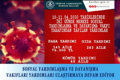 İl/İlçe Sosyal Yardımlaşma ve Dayanışma Vakıfları tarafından İl genelinde ayni ve nakdi yardımlar yapılmaya devam ediyor. Koranvirüs tedbirleri kapsamında, Vatandaşlara evlerinden başvuru yapma kolaylığı sağlamak amacıyla hafta içi mesai saatleri içerisinde 0 530 885 84 47 – 0 544 544 15 77 – 0 248 212 30 02 numaralı telefon hatları üzerinden yardım başvurularını alan Merkez Sosyal Yardımlaşma ve Dayanışma Vakfı, yapılan müracaatları en hızlı şeklide değerlendirerek ayni ve nakdi yardımları ulaştırıyor. Bu kapsamda çalışmalarını yoğunlaştıran Vakıf tarafından 10-11 Nisan tarihlerinde 143 aileye 76.500 TL tutarında nakdi yardım, 283 aileye gıda yardımı, 48 aileye de kömür yardımı yapıldı. Konuyla ilgili değerlendirmede bulunan Burdur Valisi Hasan Şıldak, “Bu hassas süreçte Valiliğimiz ve İlçe Kaymakamlıklarımız tarafından üzerinde önemle durduğumuz konuların başında, süreç içerisinde alınan tedbirler dolayısıyla ekonomik olarak etkilenen vatandaşlarımızın mağduriyet yaşamaması için yürütülen çalışmalar geliyor. Vatandaşlardan isteğimiz sosyal izolasyonu sağlayarak Vakıflara gitmeden telefonla aramak suretiyle yardım taleplerini iletmeleridir. İl/İlçe Vakıflarımız bu konuda yoğun bir şekilde çalışarak, müracaatları en hızlı şekilde değerlendirip yardımları ulaştırmaya devam edecekler” dedi.