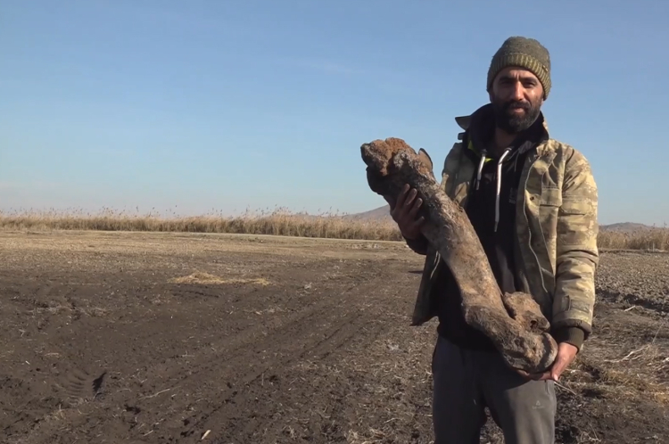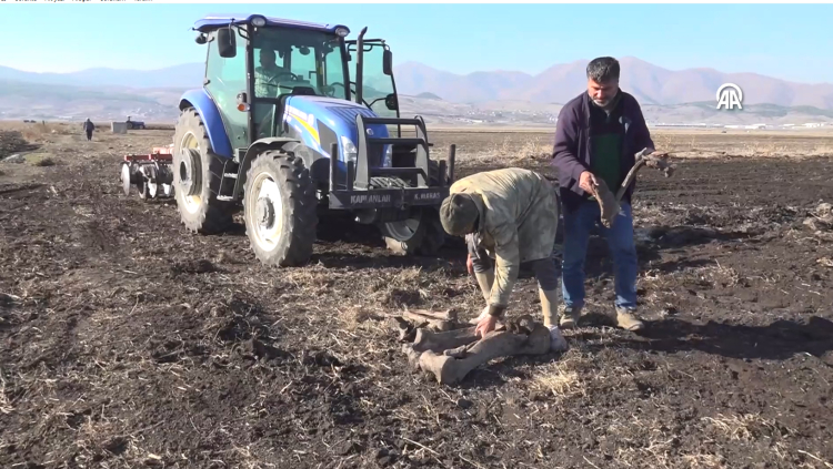 Kahramanmaraş'ın Türkoğlu ilçesinde buğday ekimi için sürülen tarlada bulunan fil kemikleri, müzeye teslim edildi.