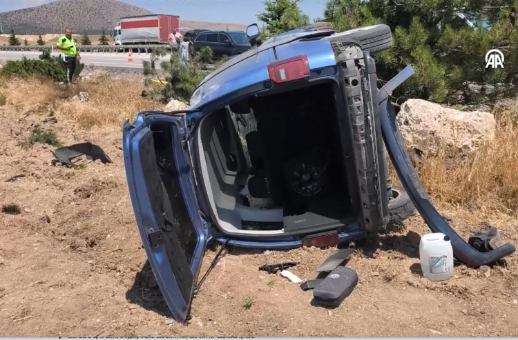 Murat İ. idaresindeki 34 LKA 52 plakalı hafif ticari araç, Kütahya-Afyonkarahisar kara yolunun 35. kilometresinde lastiğinin patlaması nedeniyle kontrolden çıkarak tarlaya devrildi.