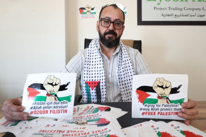 Antalya’da tarım malzeme satışıyla uğraşan ve İsrail’in Gazze’ye düzenlediği son saldırılarda 17 yakınını kaybeden Gazzeli Ali Alamassi, Filistinlilerin mağduriyetini anlatmak için “Özgür Filistin” temalı baskı ürünler hazırlıyor.