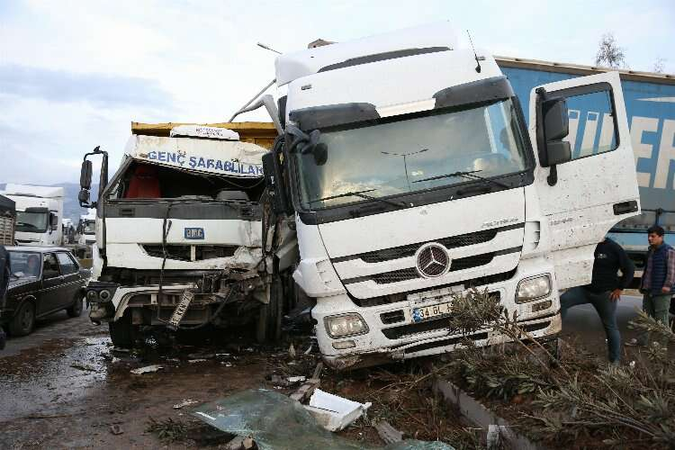 Edinilen bilgilere göre, F.D. idaresindeki 34 GL 1397 plakalı tır, Prof. Dr. Muammer Aksoy Caddesi'nde Y.Ş. yönetimindeki 31 KKN 75 plakalı kamyonla çarpıştı.