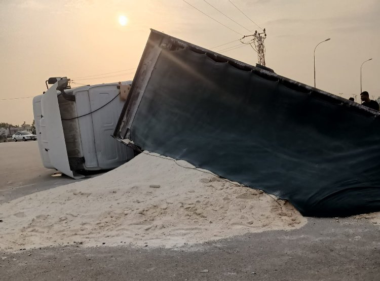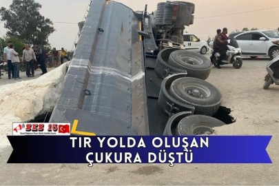 Adana'da kum yüklü bir tır, seyir halindeyken yolda oluşan çukura düştü.