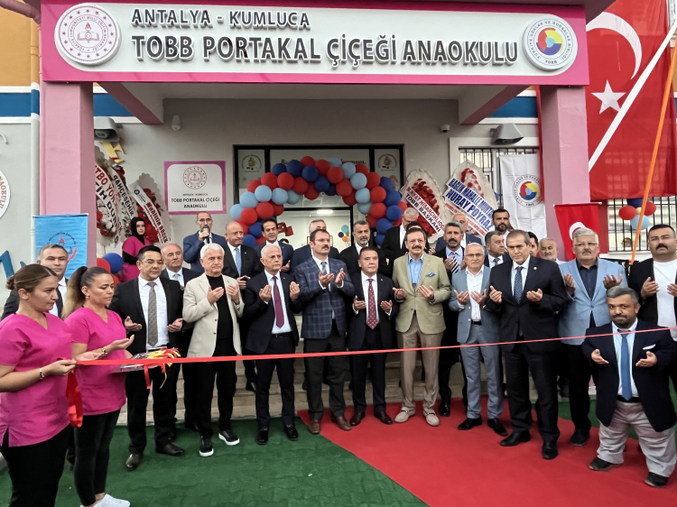 Antalya'ya gelen Hisarcıklıoğlu, Kumluca ilçesinde TOBB'un desteğiyle yapılan TOBB Portakal Çiçeği Anaokulu'nun açılışına katıldı.