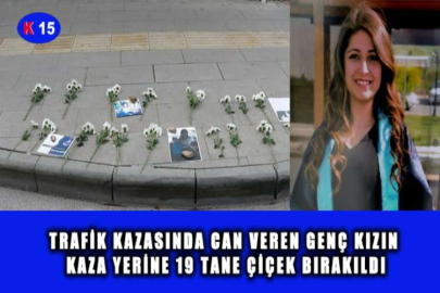 TRAFİK KAZASINDA CAN VEREN GENÇ KIZIN KAZA YERİNE 19 TANE ÇİÇEK BIRAKILDI