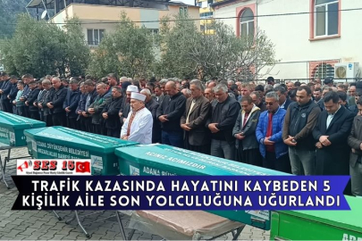 Adana'da dün minibüsle çarpışan otomobilde hayatını kaybeden anne, baba ve 3 çocuğunun cenazeleri, Feke ilçesinde toprağa verildi.