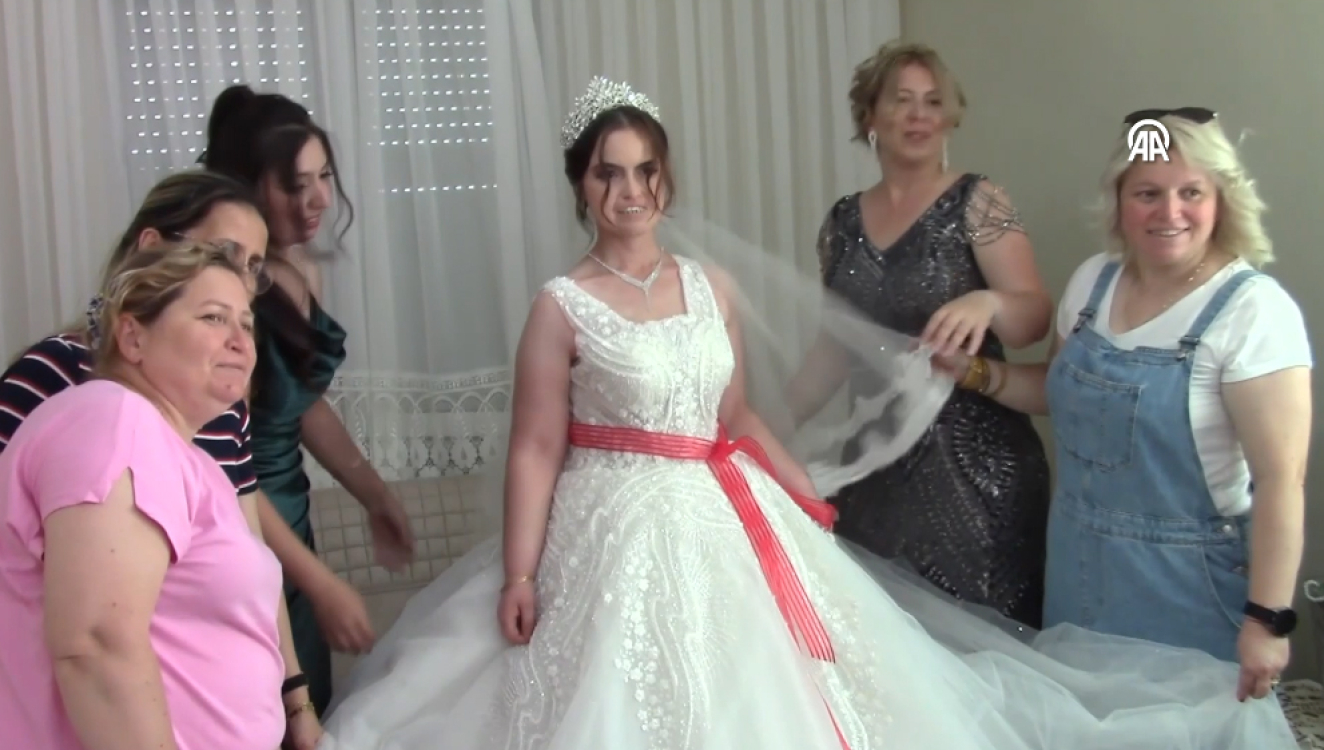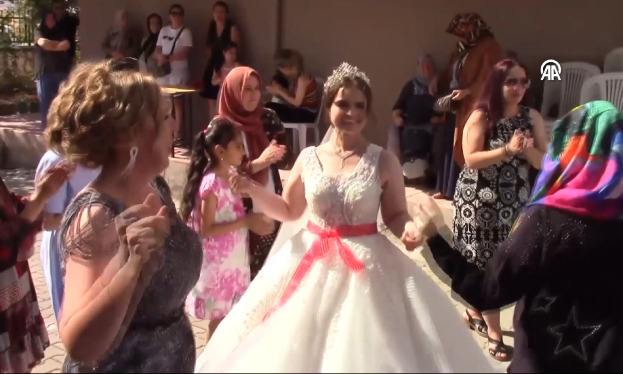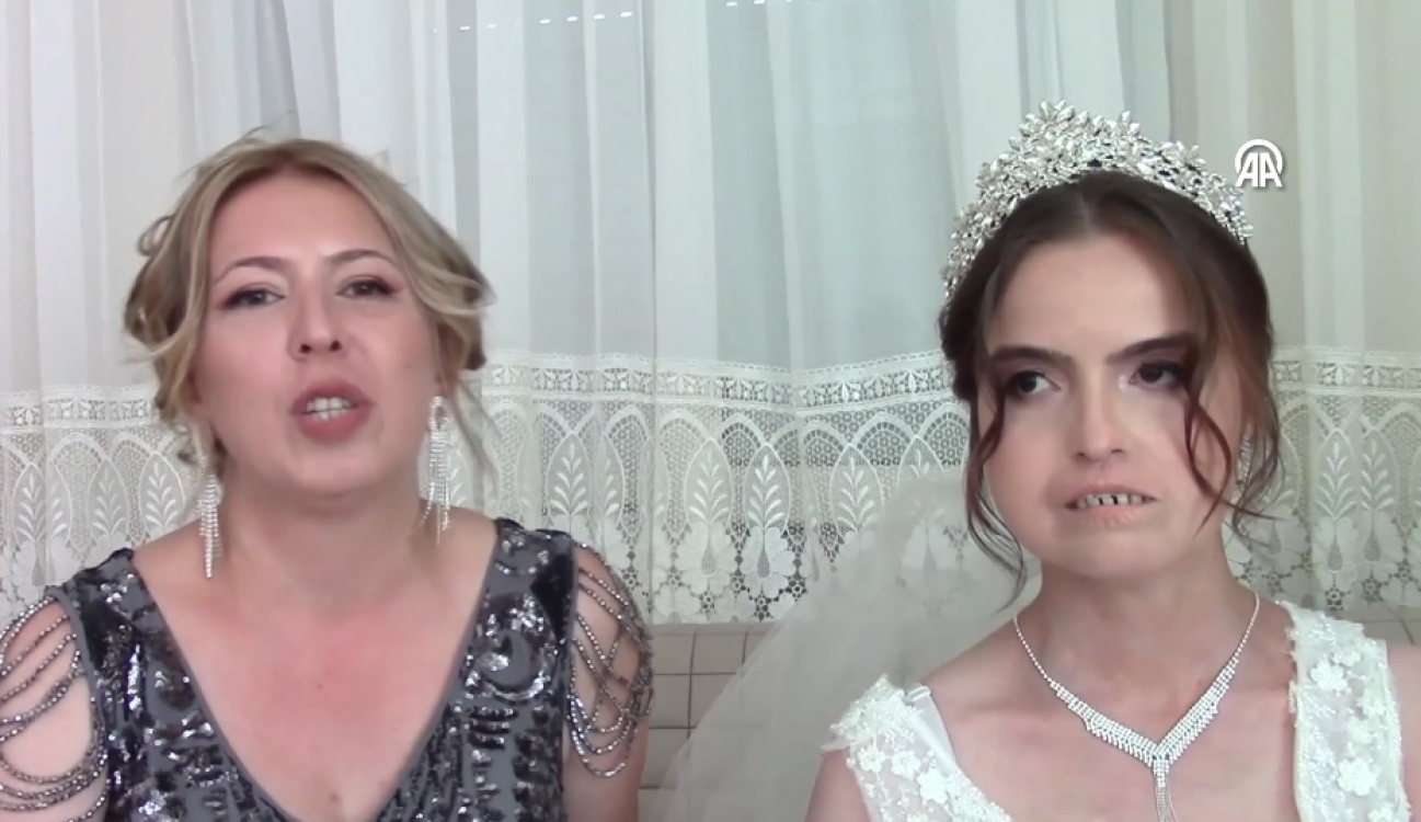 Balıkesir'de zihinsel engelli 33 yaşındaki Tuğçe Dilmaç, merhum babasının en büyük arzusunu yerine getirip beyaz gelinlik giyerek, aile üyelerinin kendisi için hazırladığı temsili düğünde eğlendi.