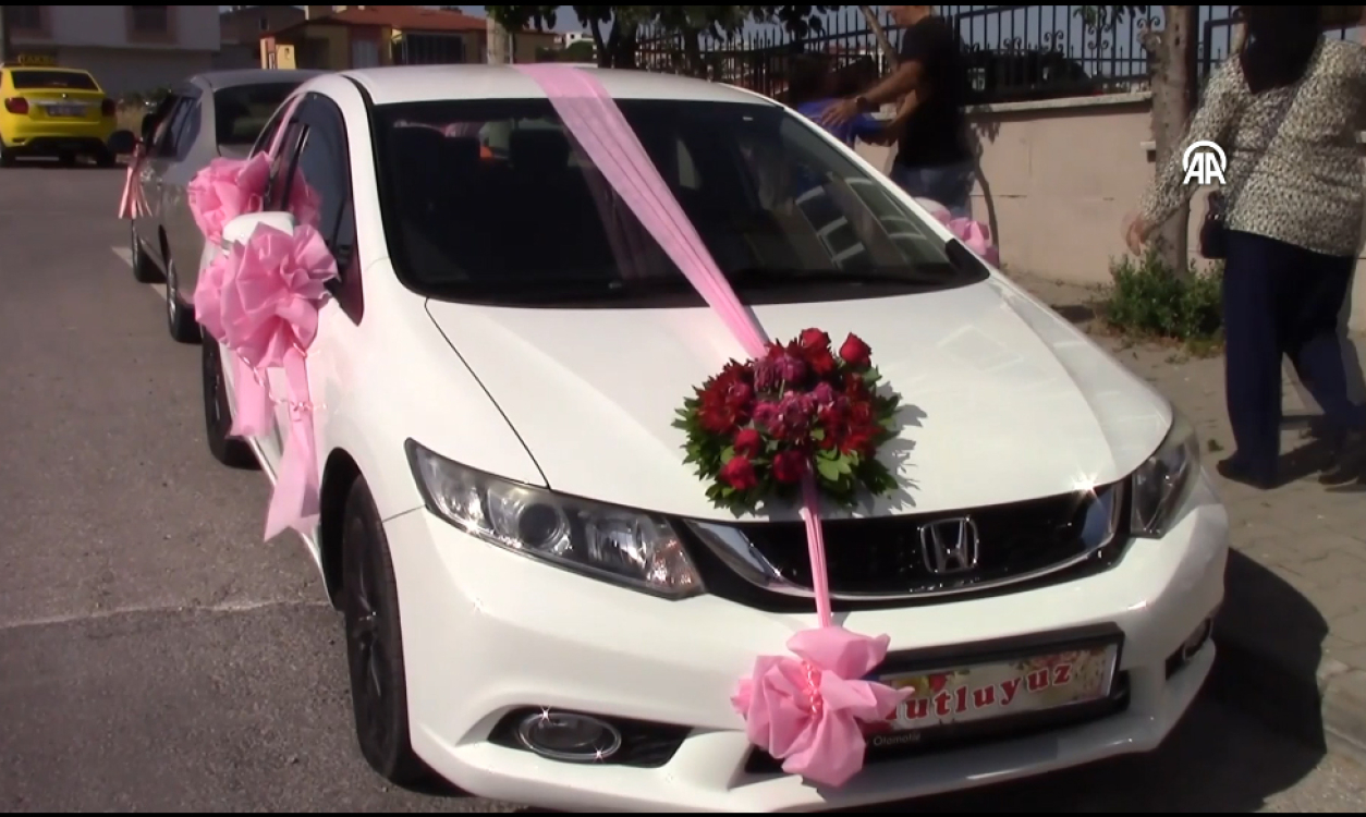 Anne Günnaz Dilmaç ve abla Tuğba Pazar'ın düzenlediği damatsız düğün organizasyonunda gelinlik giydirilen Tuğçe'nin ellerine kına yakıldı, araç konvoyu düzenlendi.