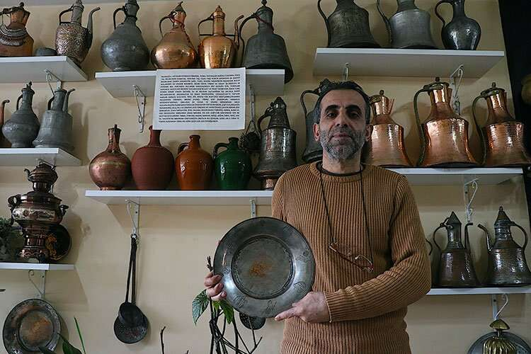 Korkut, 30 yıl önce ailesinin hurdacıya satmasına engel olduğu bakır eşyaları uzun yıllar evinin bir köşesinde sergiledi.