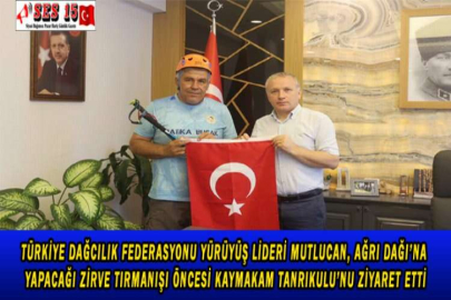 TÜRKİYE DAĞCILIK FEDERASYONU YÜRÜYÜŞ LİDERİ MUTLUCAN, AĞRI DAĞI’NA YAPACAĞI ZİRVE TIRMANIŞI ÖNCESİ KAYMAKAM TANRIKULU’NU ZİYARET ETTİ