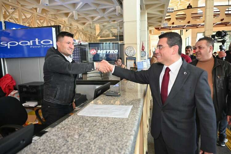 Cumhur İttifakı’nın Antalya Büyükşehir Belediye Başkan adayı Hakan Tütüncü, Antalya Şehirlerarası Otobüs Terminali’ni ziyaret etti. Tütüncü, Otobüs firmalarını tek tek gezerek sohbet etti, yola çıkacak vatandaşlara da hayırlı yolculuklar diledi. AK Parti Antalya Milletvekili Mustafa Köse ile beraber, Antalya Şehirler Arası Otobüs İşletmeleri Eğitim ve Yardımlaşma Derneği’ni de ziyaret eden Tütüncü, otobüs işletmelerinin istek ve taleplerini dinledi. Otogar kiralarının ve otobüs giriş çıkış ücretlerinin yüksekliği, otobüs firmalarının şehir içi servislerinin kaldırılması, kışın otobüslerin park alanları ile ilgili sorunlar dile getirildi. Tütüncü, otogar esnafının sıkıntısını yakından takip ettiklerini söyledi. Şehir içi trafiğinden dolayı kaldırılmak istenen otobüs firmaları servisleri ile ilgili Tütüncü, “Antalya’nın altın çağında öncelikli ele alacağımız konu Antalya’nın trafik sorunu olacak. Antalya’nın ulaşım sorununu çözmek için bir mastır plan üzerinde çalıştık. Çalışılan mastır planda da Antalya’ya araçların şehir dışından az girmelerine yönelik bir adım olacak.” dedi.