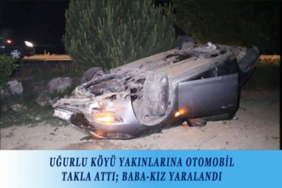 UĞURLU KÖYÜ YAKINLARINA OTOMOBİL TAKLA ATTI; BABA-KIZ YARALANDI