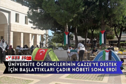 Mersin Üniversitesi (MEÜ) öğrencilerinin bazı sivil toplum kuruluşlarının da katılımıyla İsrail'in Gazze'ye yönelik saldırılarını protesto etmek ve ABD'deki üniversitelerde başlayan eylemlere destek olmak amacıyla çadır kurarak tuttukları nöbet tamamlandı.