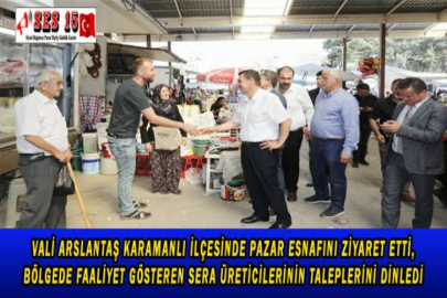 VALİ ARSLANTAŞ KARAMANLI İLÇESİNDE PAZAR ESNAFINI ZİYARET ETTİ, BÖLGEDE FAALİYET GÖSTEREN SERA ÜRETİCİLERİNİN TALEPLERİNİ DİNLEDİ