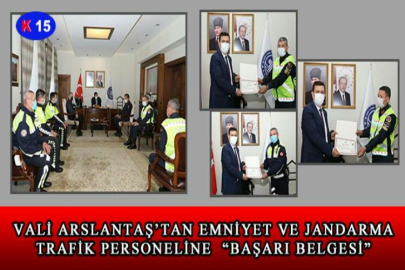 VALİ ARSLANTAŞ’TAN EMNİYET VE JANDARMA TRAFİK PERSONELİNE “BAŞARI BELGESİ”