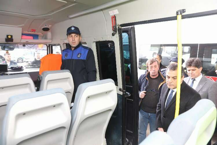 Burdur Valisi Türker Öksüz, özel öğrenci servislerine yönelik yapılan denetime katıldı.