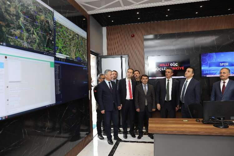 Bölge Müdürü Rifat Ataş ziyaret sırasında 2023 yılında tamamlanan afet yönetiminde koordinasyon merkezi olarak kullanılan yangın harekat merkezi hakkında Vali Öksüz’e bilgi verdi.