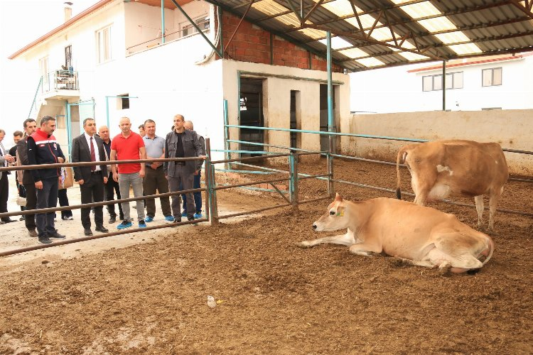 Burdur Valisi Türker Öksüz, merkeze bağlı Yazıköy Köyünde Jersey ırkı büyükbaş hayvan yetiştiriciliği yapan Güngör Ailesine ait işletmede incelemede bulundu.