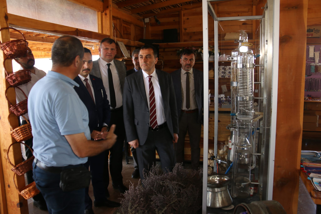 Burdur Valisi Türker Öksüz, Yeşilova İlçesinde Asım Çevni'ye ait Lavantepe Aromatik Bitki Bahçesi ve işleme tesislerini ziyaret etti.