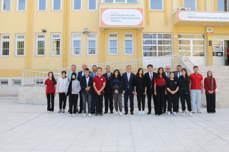Burdur Valisi Dr. Türker Öksüz, aynı kampüs içerisinde eğitim öğretime devam eden Emekevler Şehit Rıza Çevik Mesleki ve Teknik Anadolu Lisesi, 75. Yıl Cumhuriyet Anaokulu ile Mesleki ve Teknik Ortaokulu'na ziyarette bulundu.