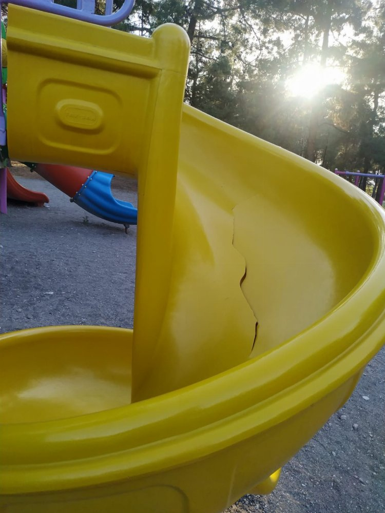 Oyun parkındaki kaydırağı kıran kendini bilmez kişiler, kaydırağı kullanamaz hale getirdi.